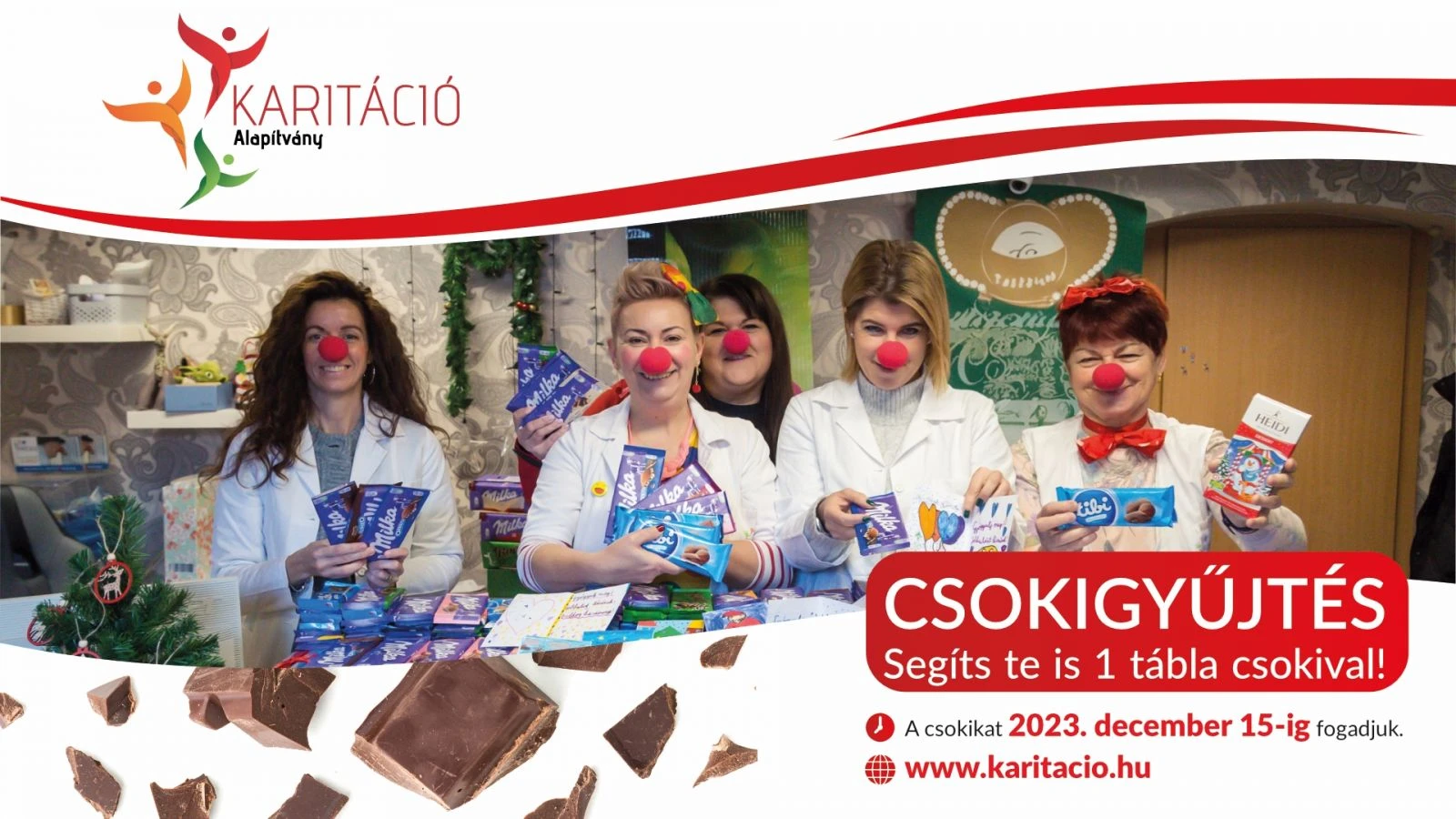 Idén is egy–egy tábla csokival lehet támogatni a Karitáció Alapítvány bohócdoktorainak kórházi gyógyítást segítő tevékenységét! Az alapítvány célja több mint egy évtizede töretlen, minél több kórházban fekvő gyermek karácsonyi ünnepét felvidítani csokoládé ajándékozásával.
